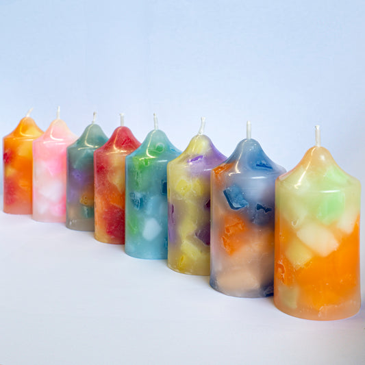 Regenbogen-Kerzen in unterschiedlichen Formen