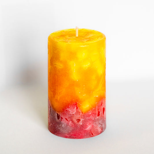 Unsere in Feuerbach handgefertigten Kerzen entstehen ausschließlich aus gespendeten Kerzenresten. Die Kerzenreste werden zunächst gereinigt, nach Farben sortiert, zerkleinert und gegebenenfalls gefärbt. Die unterschiedlich farbigen Wachsstückchen werden direkt in die Formen gegeben und mit flüssigem weißem Wachs aufgefüllt. Dadurch wird die Marmorierung erzeugt und jede Kerze wird zu einem unverwechselbaren Unikat.
